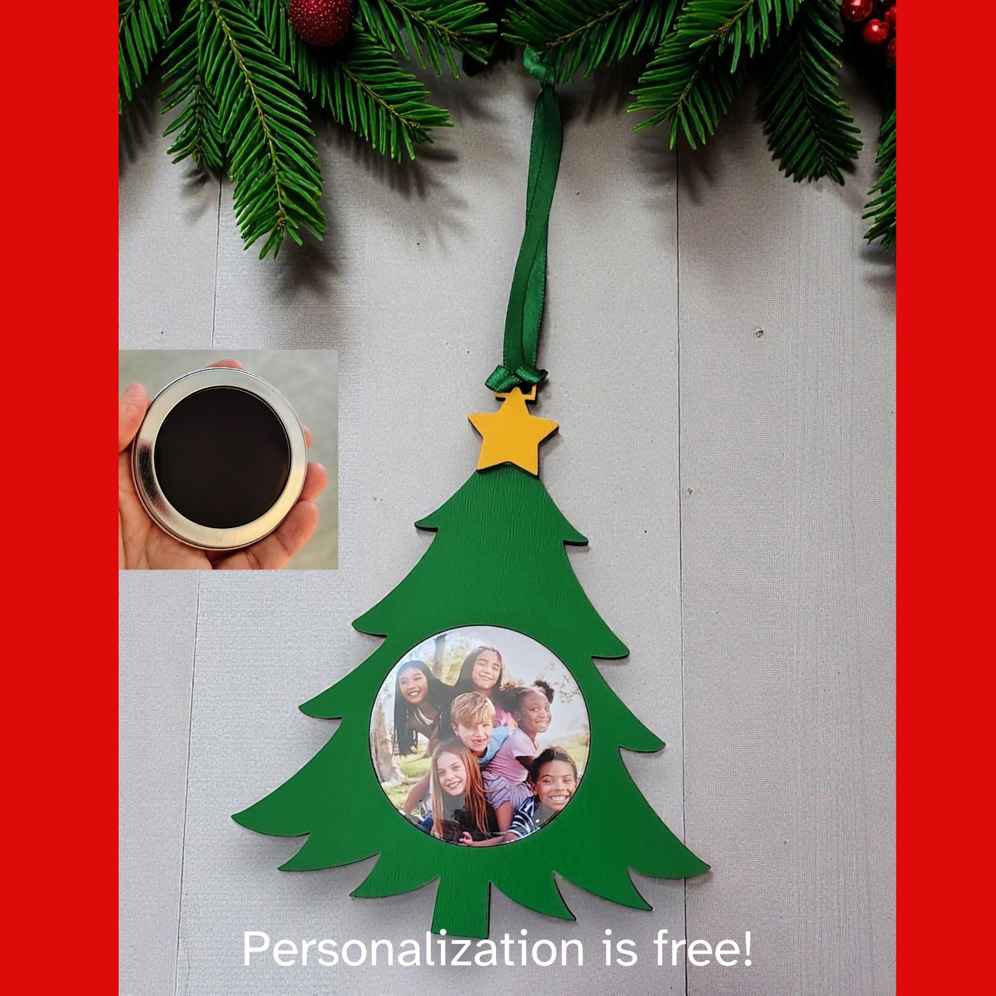 Personalized Christmas Tree Photo Magnet Ornament