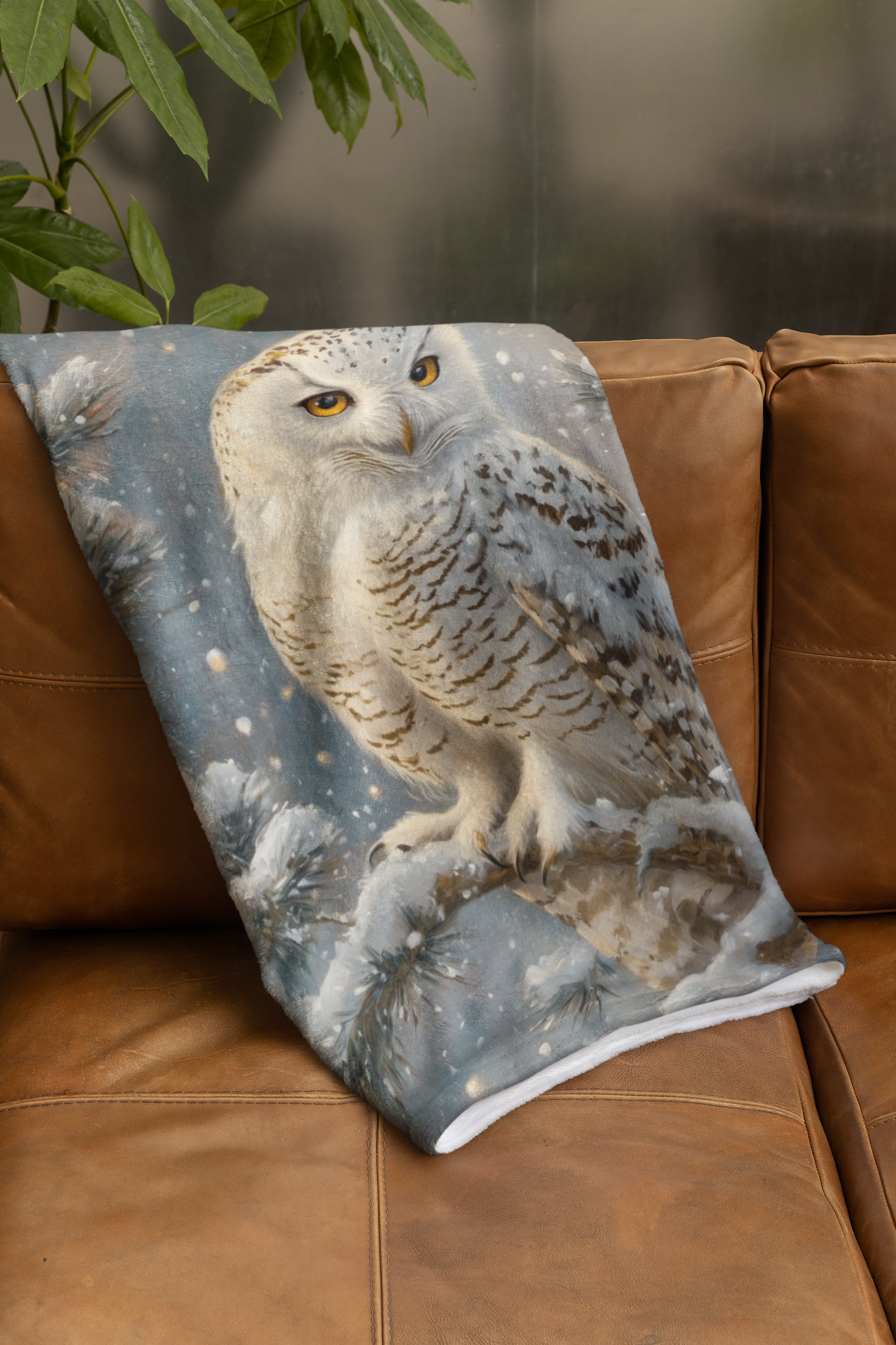 Snowy Owl Velveteen Plush Blanket - Cozy Winter Decor